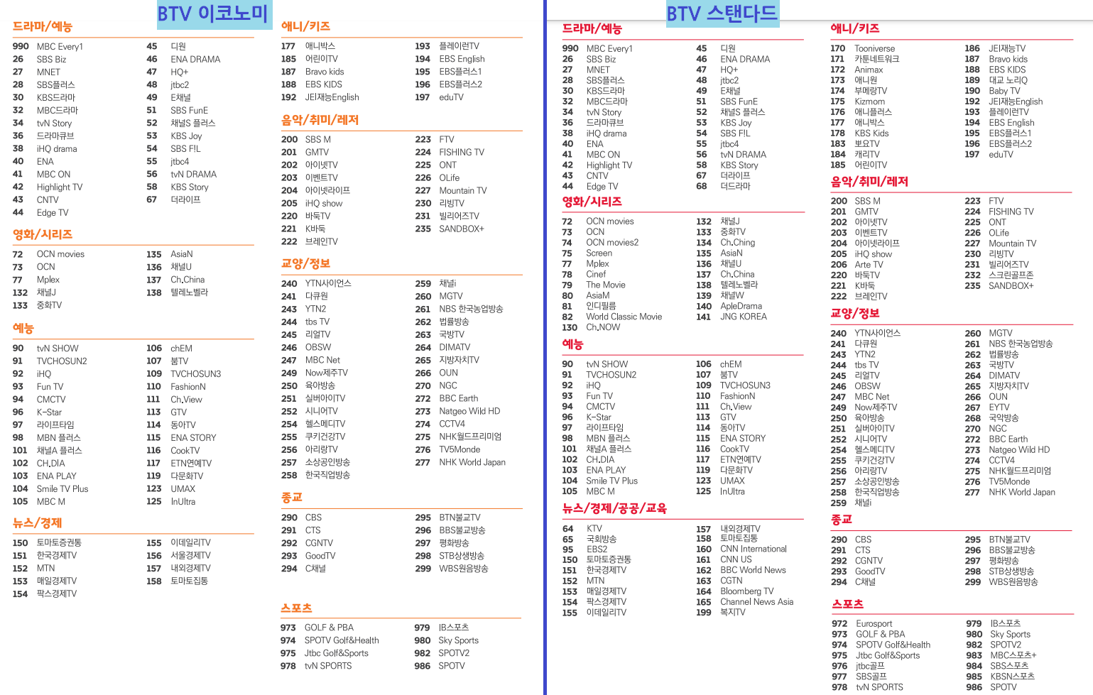 그래서 해당 방송들이 중요하시다면 스탠다드로 가입해주셔야 하죠!