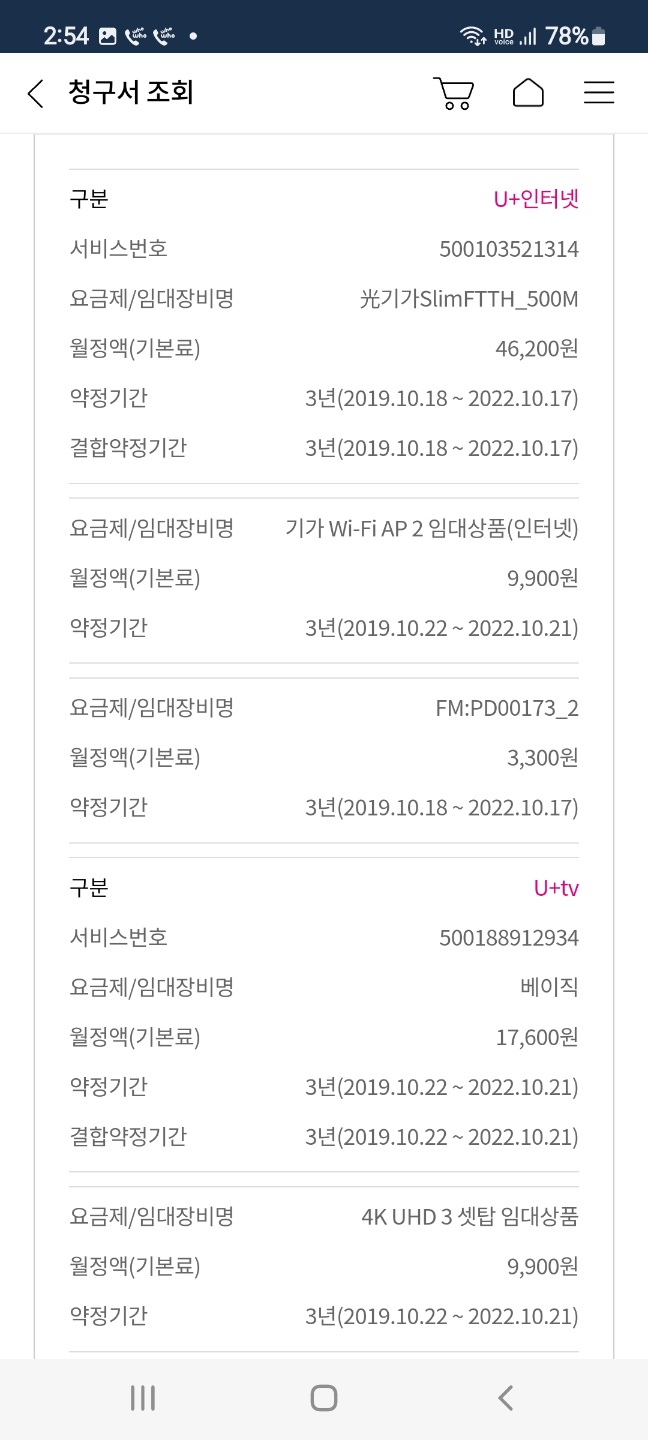 이제 약정이 끝나서 재약정을 할지 이동할지 고민인데요.(인터넷은 약정만료 티비는 10월 22일(토) 약정만료 예정)