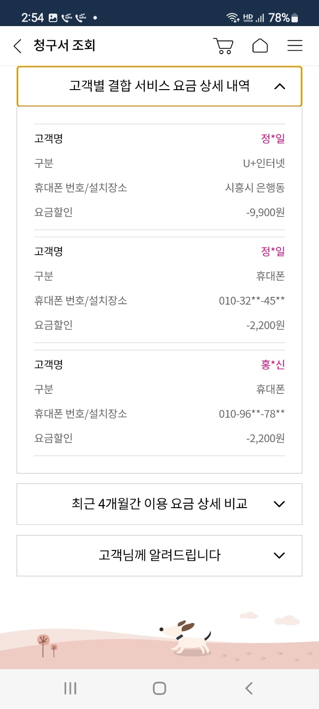 [밑의 사진들은 이번달 청구서이고요. 현재 요금입니다.]