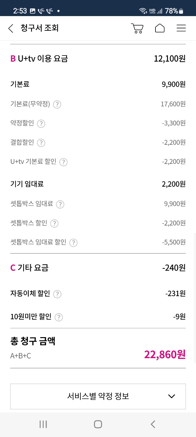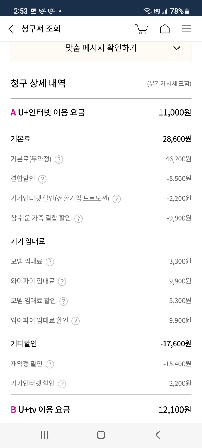 이와 별개로 휴대폰 요금에서도 총 -18,000원 할인이 적용되니