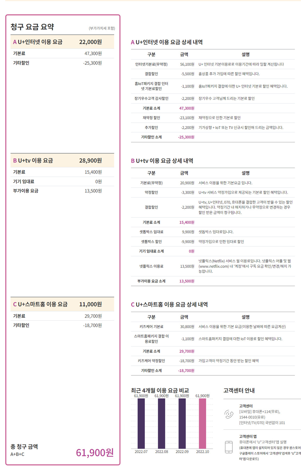 일단 LG는 IoT와 넷플릭스 월정액 13,500원 제외하고 계산해 볼게요.