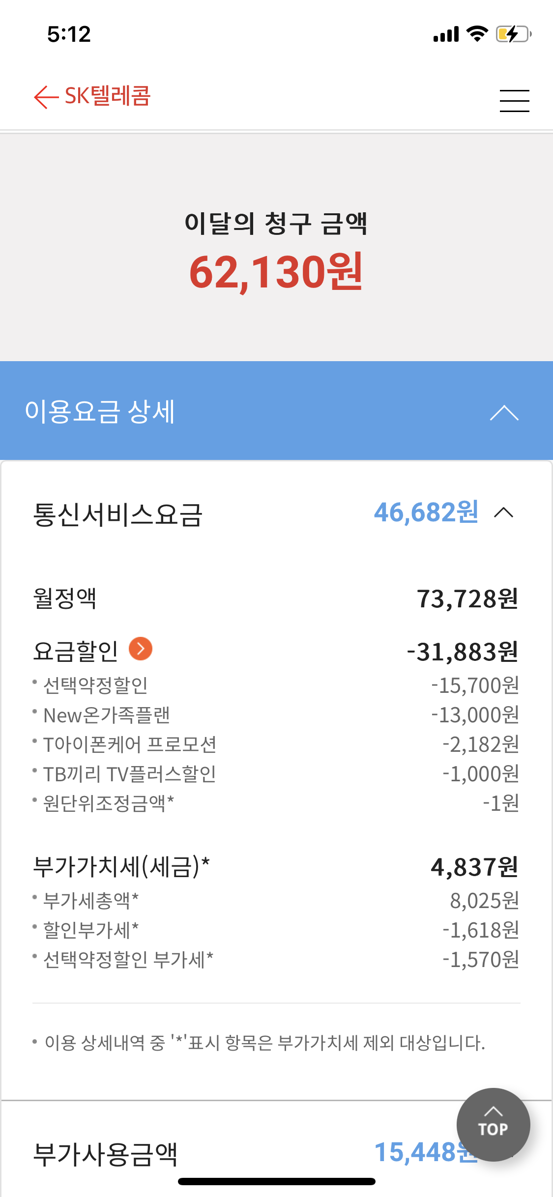 = 이렇게 매월 총합 22,110원이 할인되구요~~!!