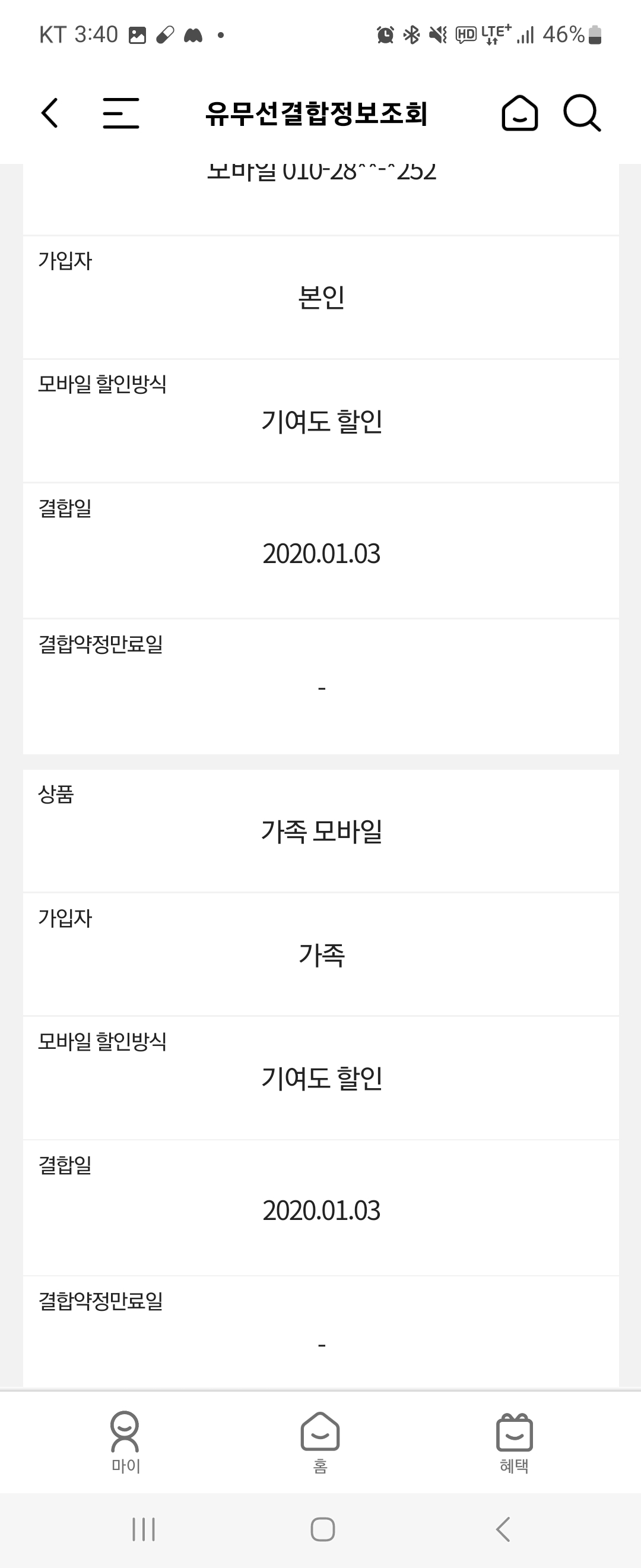 인터넷+휴대폰 결합할인을 쭉 적용받는 것이 이득입니다 +_+