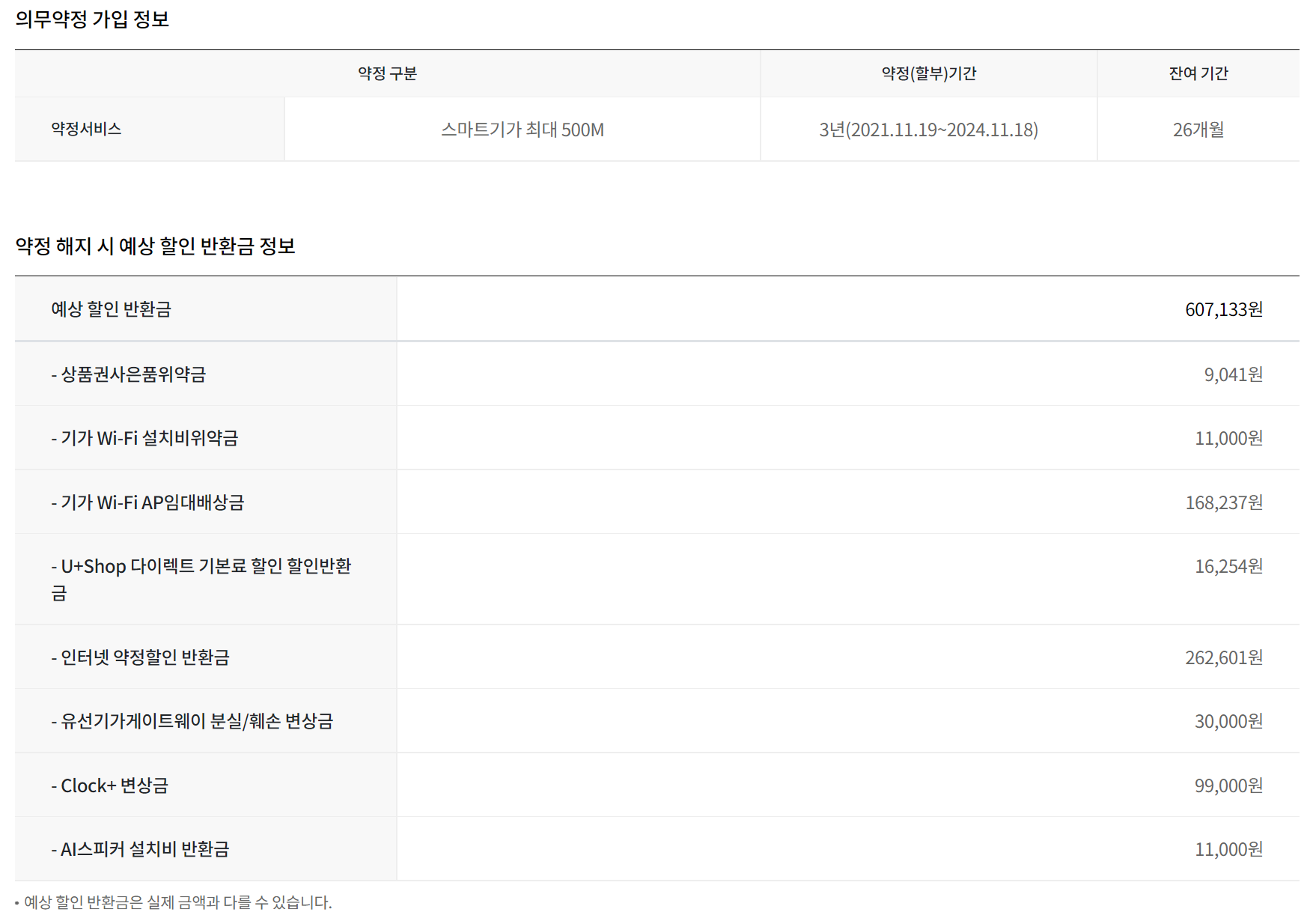 저희집은 약정이 1년도 지나지 않았다 보니 위약금이 너무 큰듯 합니다. 인터넷 조회 해보면