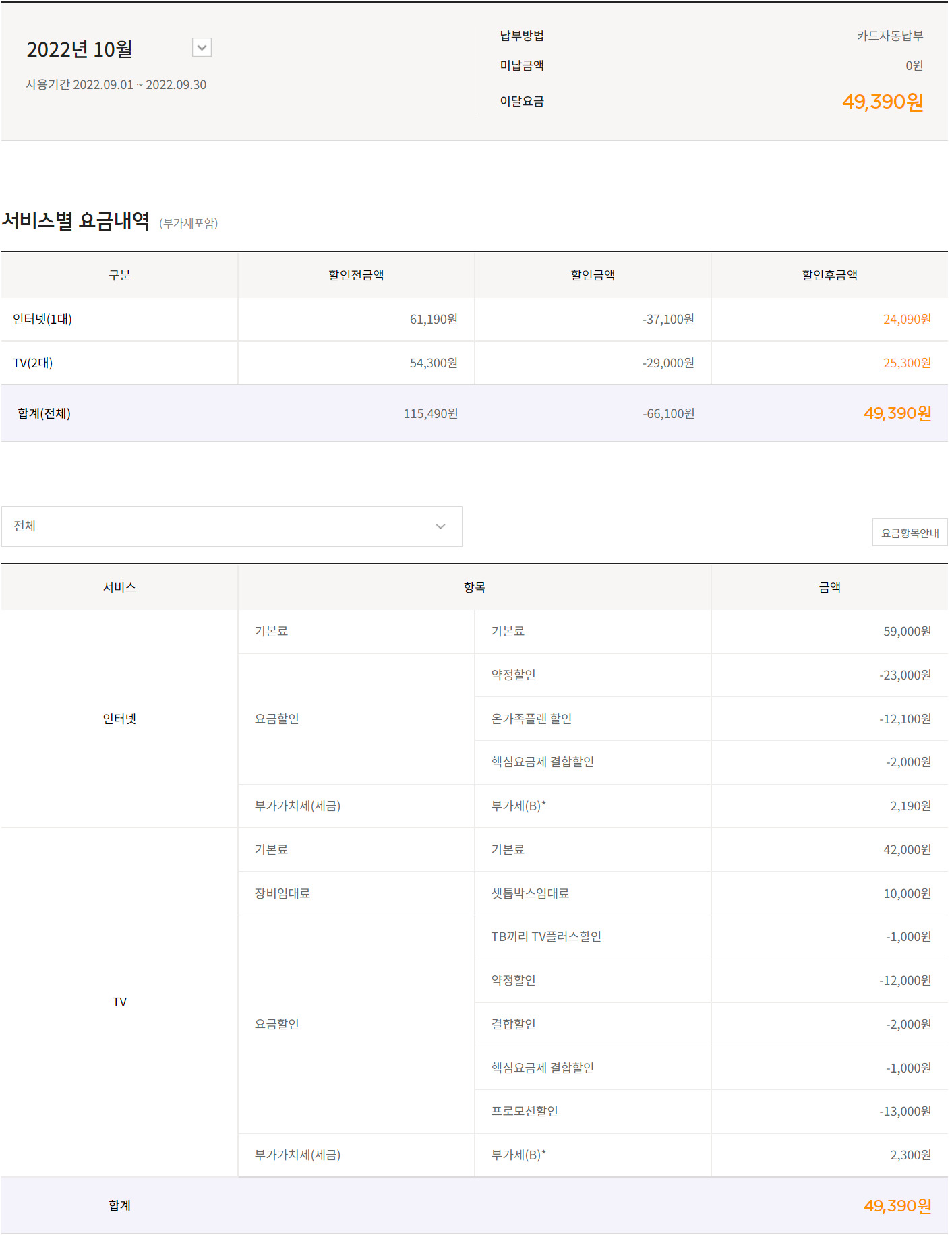인터넷 비용 관련