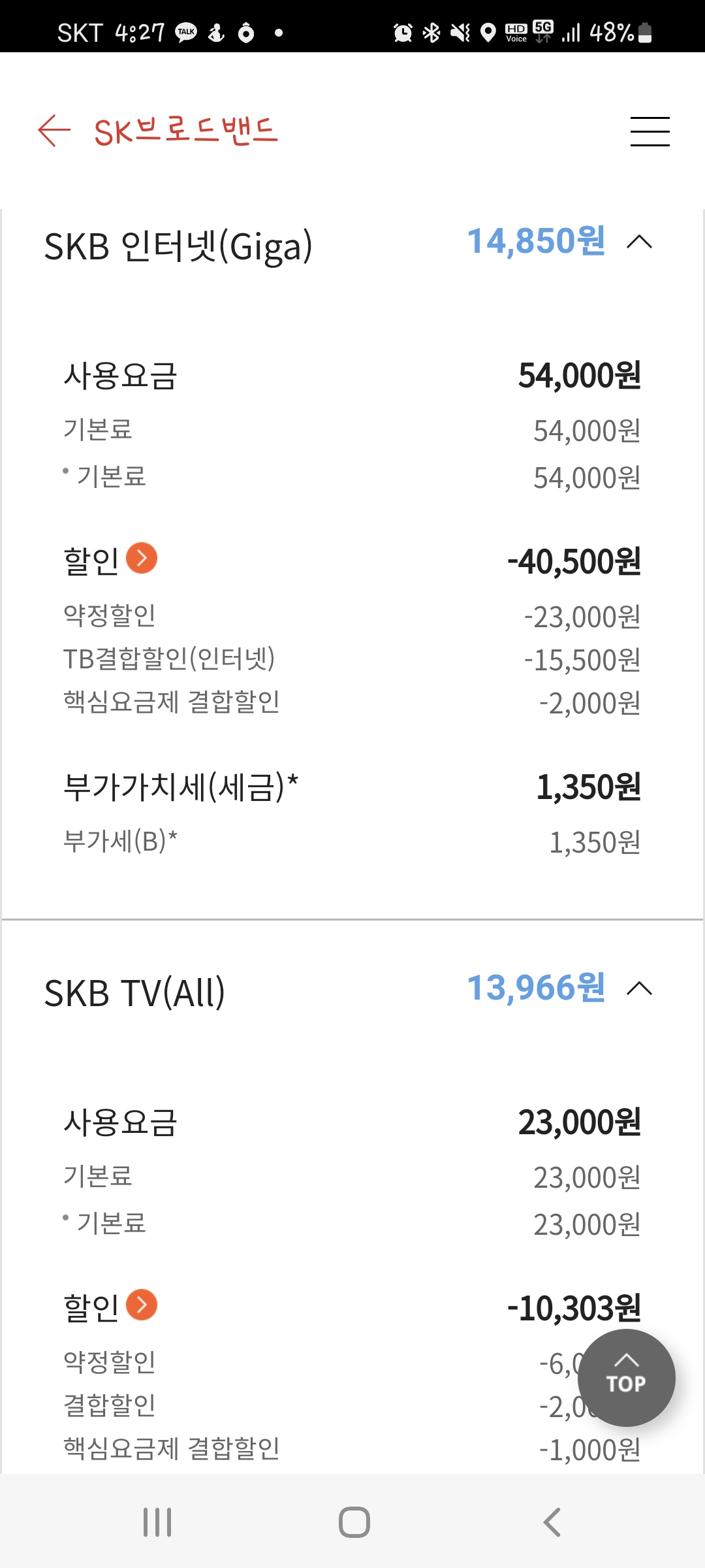 그리고 별도로 핵심 요금 할인 1,100원도 적용되어 있고요🙋♀️
