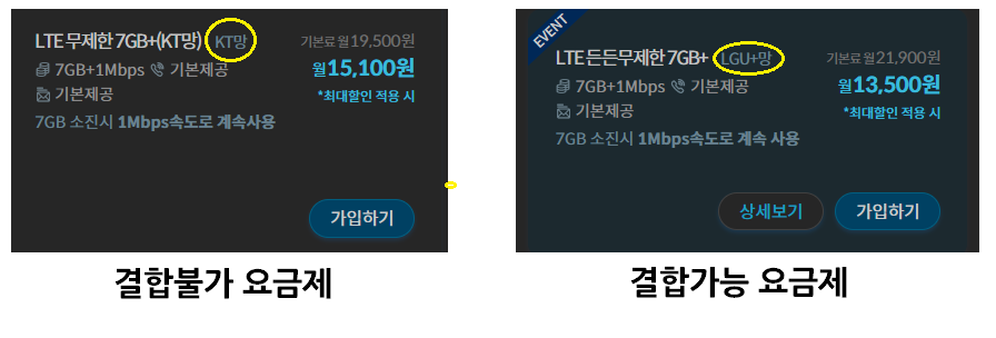 물론 알뜰폰이라고 해서 모두 결합되는 건 아니고