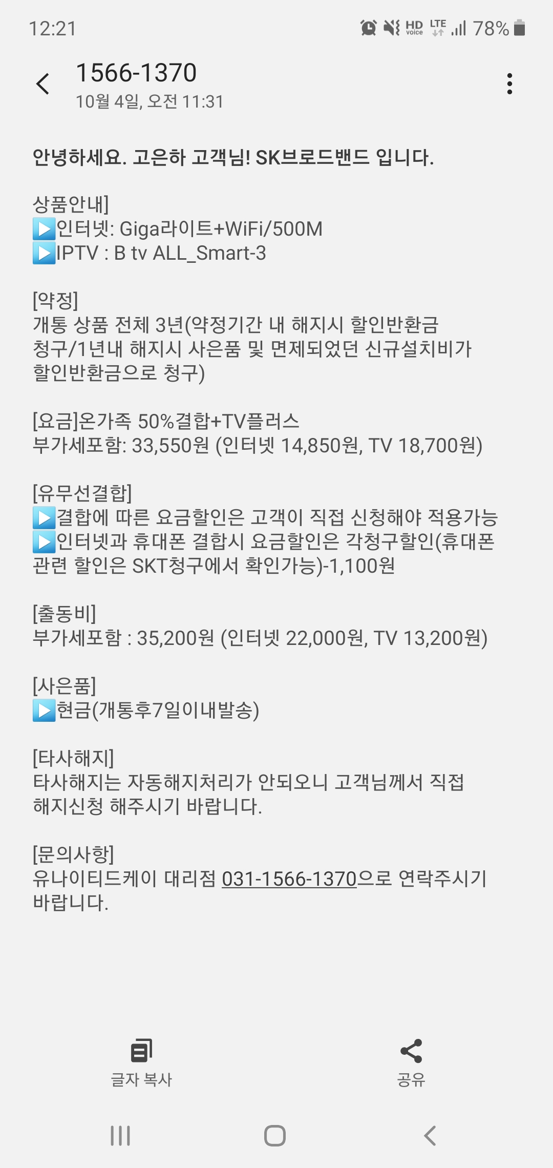SK인터넷을 유지 + 재약정 하시는 것이 좋구용~~!!