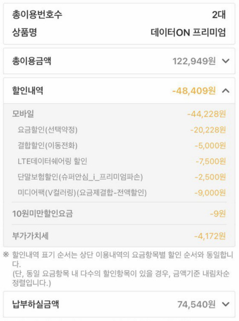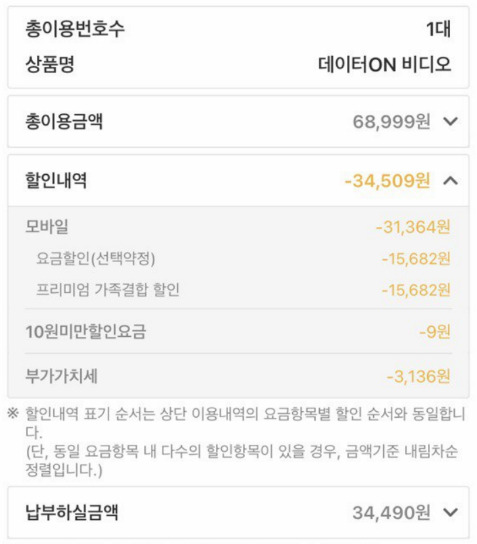 이는 KT의 엄청난 할인 제도인 "프리미엄 가족결합" 덕분입니다.