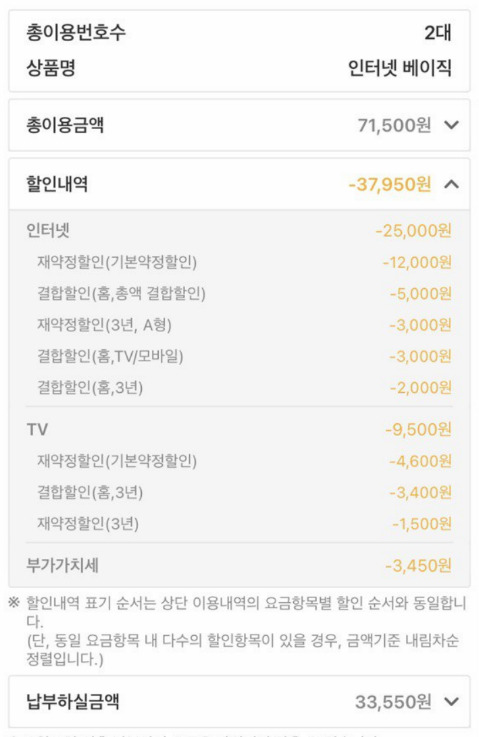 1) 인터넷, TV 요금 편익만 생각하면 KT 재약정이 이득입니다.