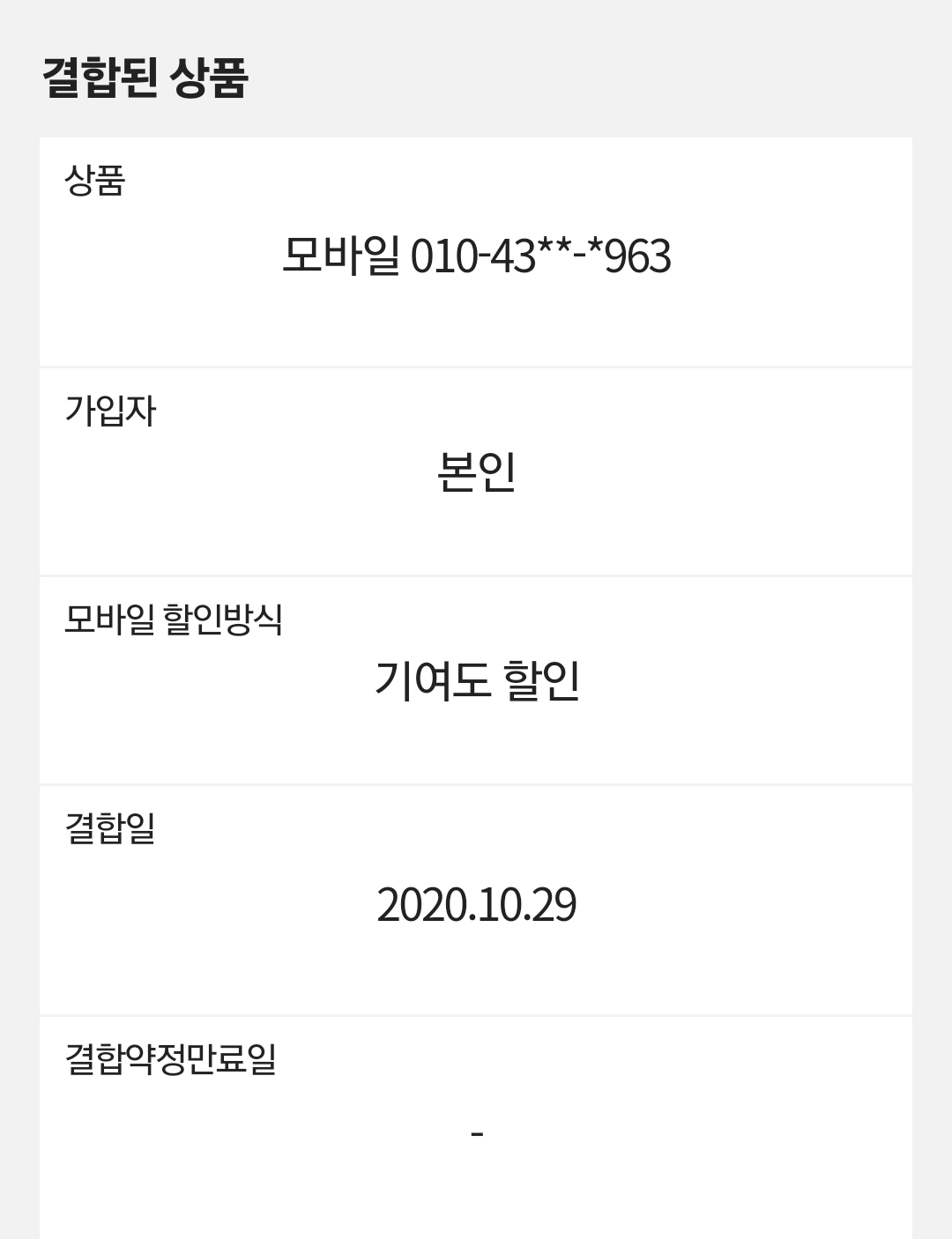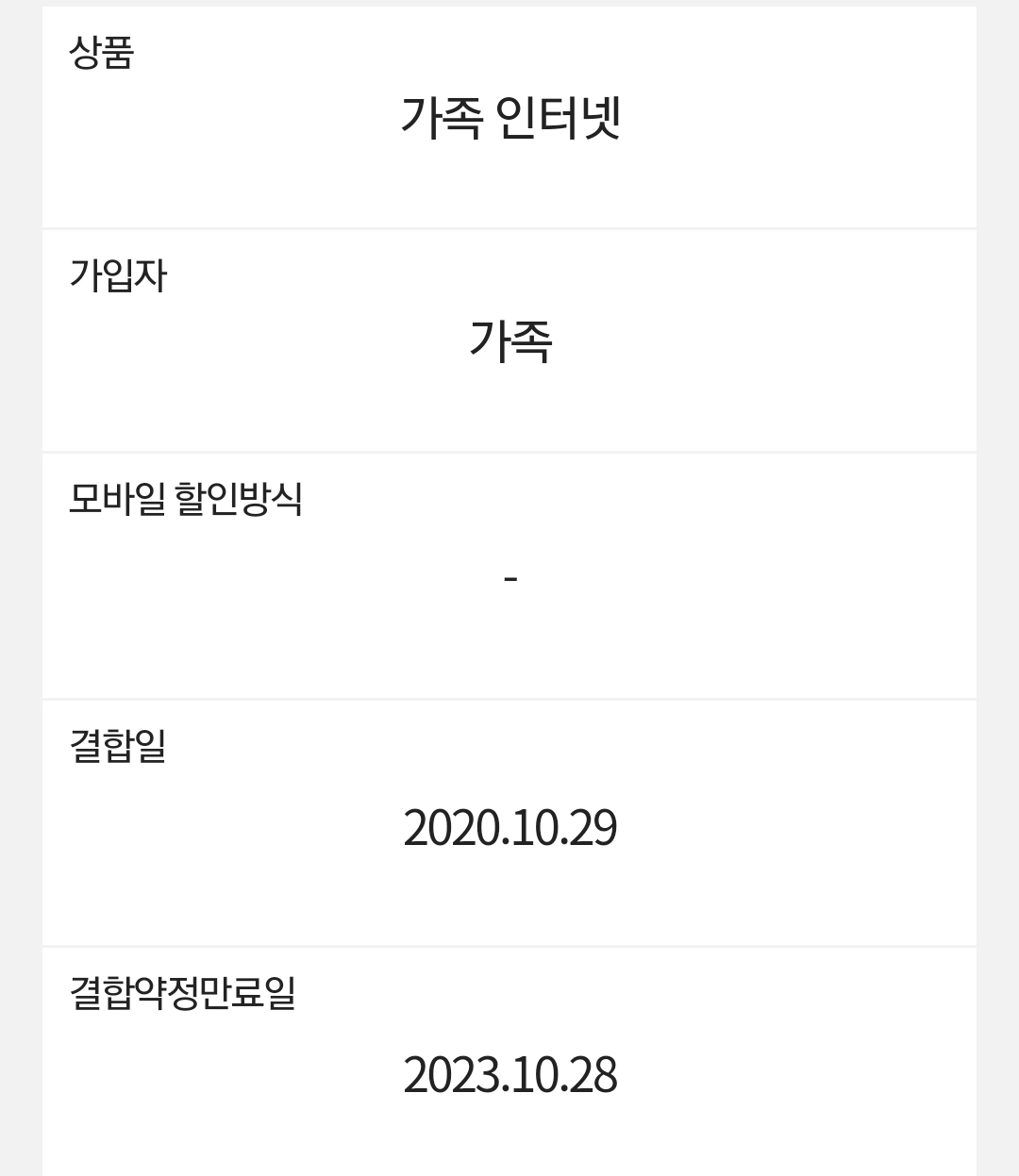 그리고 모바일은 결합약정만료일이 없는데 인터넷 은 내년 10월 28일까지 만료일이 있어