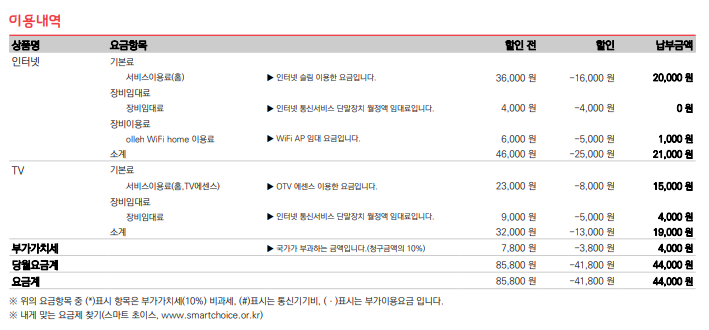 요금 편익을 생각하면 스카이라이프 이동이 유리하고