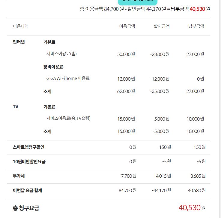 다만..! 이번에 인터넷과 티비 재약정 체결을 전제로!