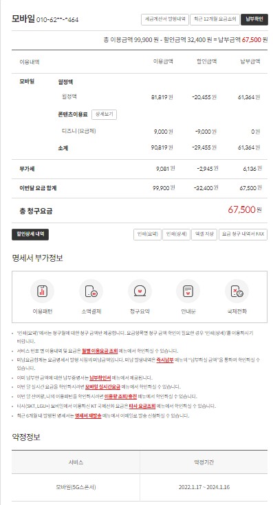 인터넷 요금 5,500원 + 휴대폰 요금에서 16,610원 할인 받습니다.