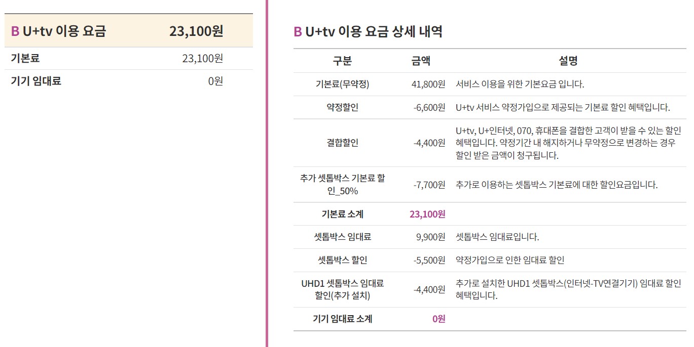 이는 3년 약정 기준으로 부가세와 셋탑박스 임대료까지 포함한 금액이에요!