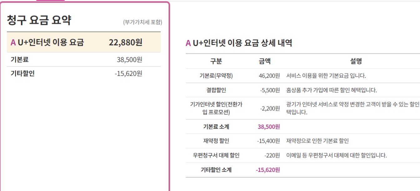이때문에 첫 달요금은 이상하게 청구될텐데, 익월부턴 말씀드린 금액대로 나올 것이에유!