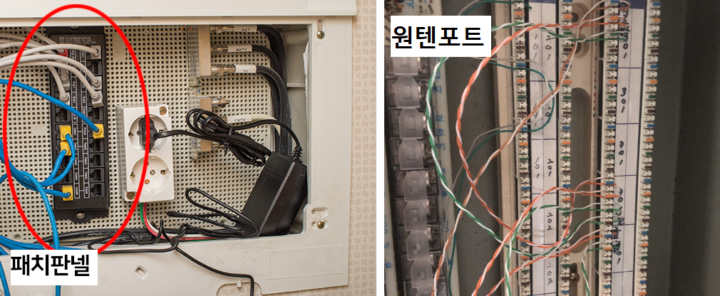 인터넷단자함은 열어보니 파란색으로 랜선이 한가닥씩 연결되있는거같고 따로 라벨링은 되어있지 않습니다.