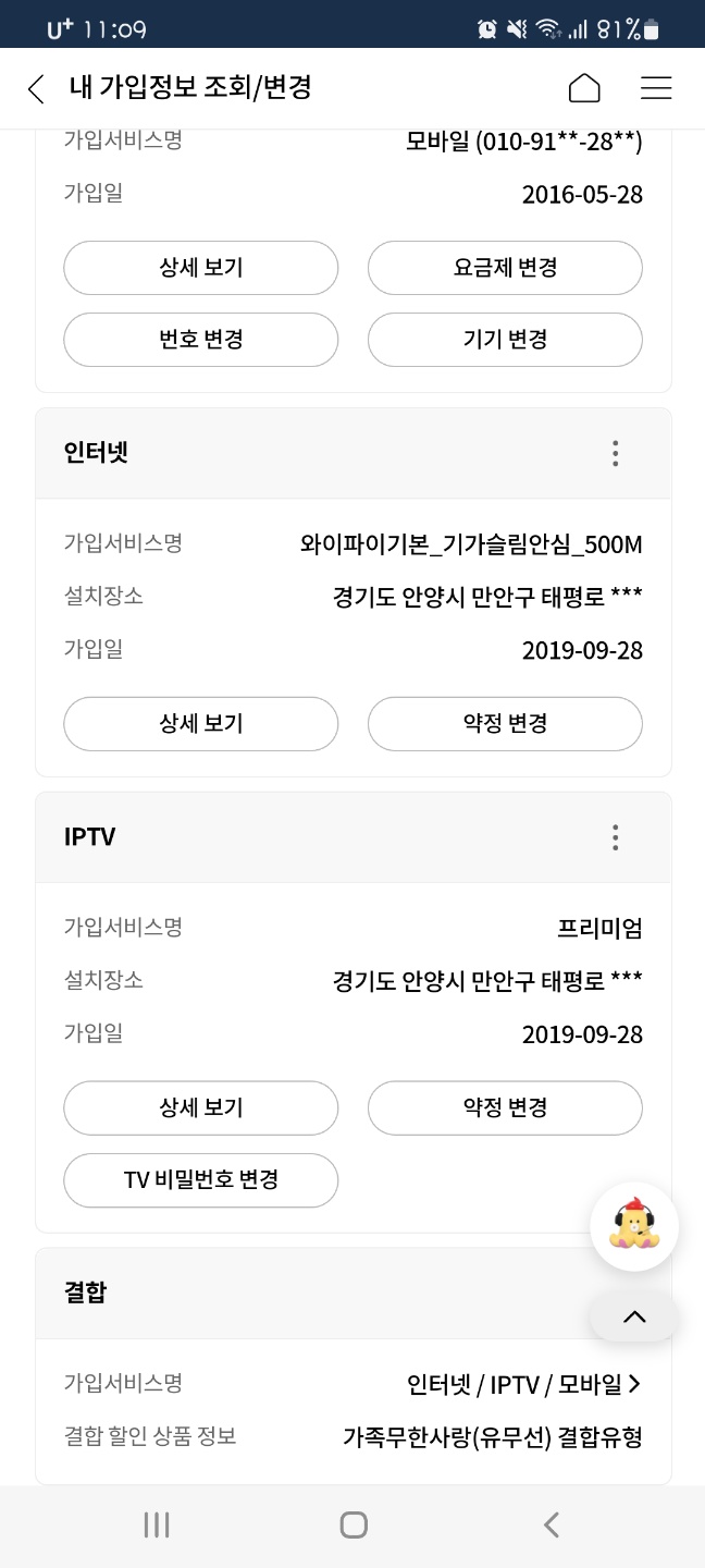 현재 LG '가족무한사랑 (유무선)' 폰결합 적용으로 인해..!