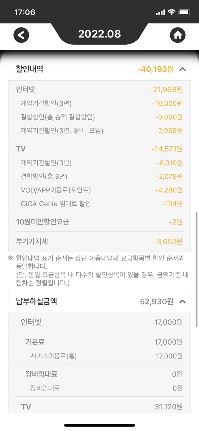 고지서를 보니 아무런 유무선 결합을 하지 않으셨지요~?
