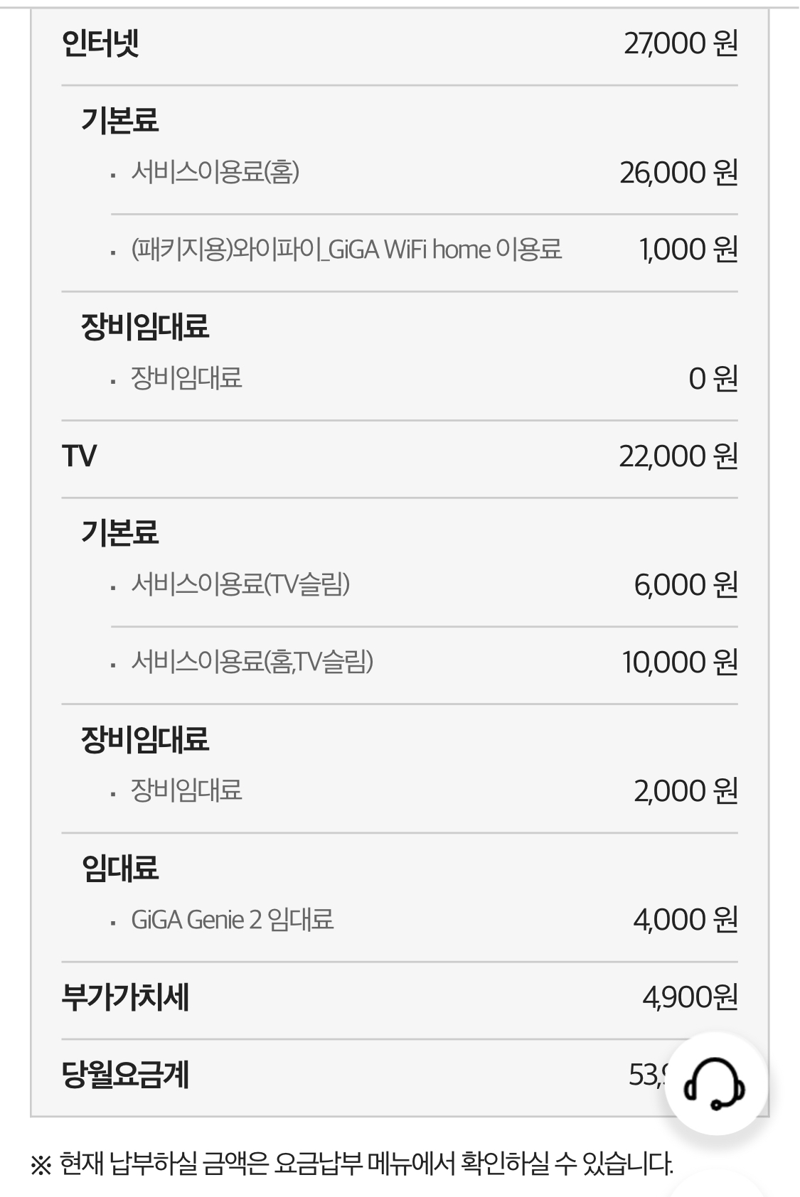 현재 기가기니2 사용으로 53,900 요금이 나오는데 비싼편이에요?