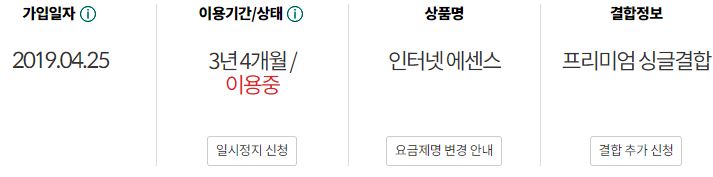 실제로 KT 인터넷 쓴지는 어언 10년이 다되가는데, 뭔 꼼수인지는 모르겠으나 가입 일자가 2019년으로 나옵니다.