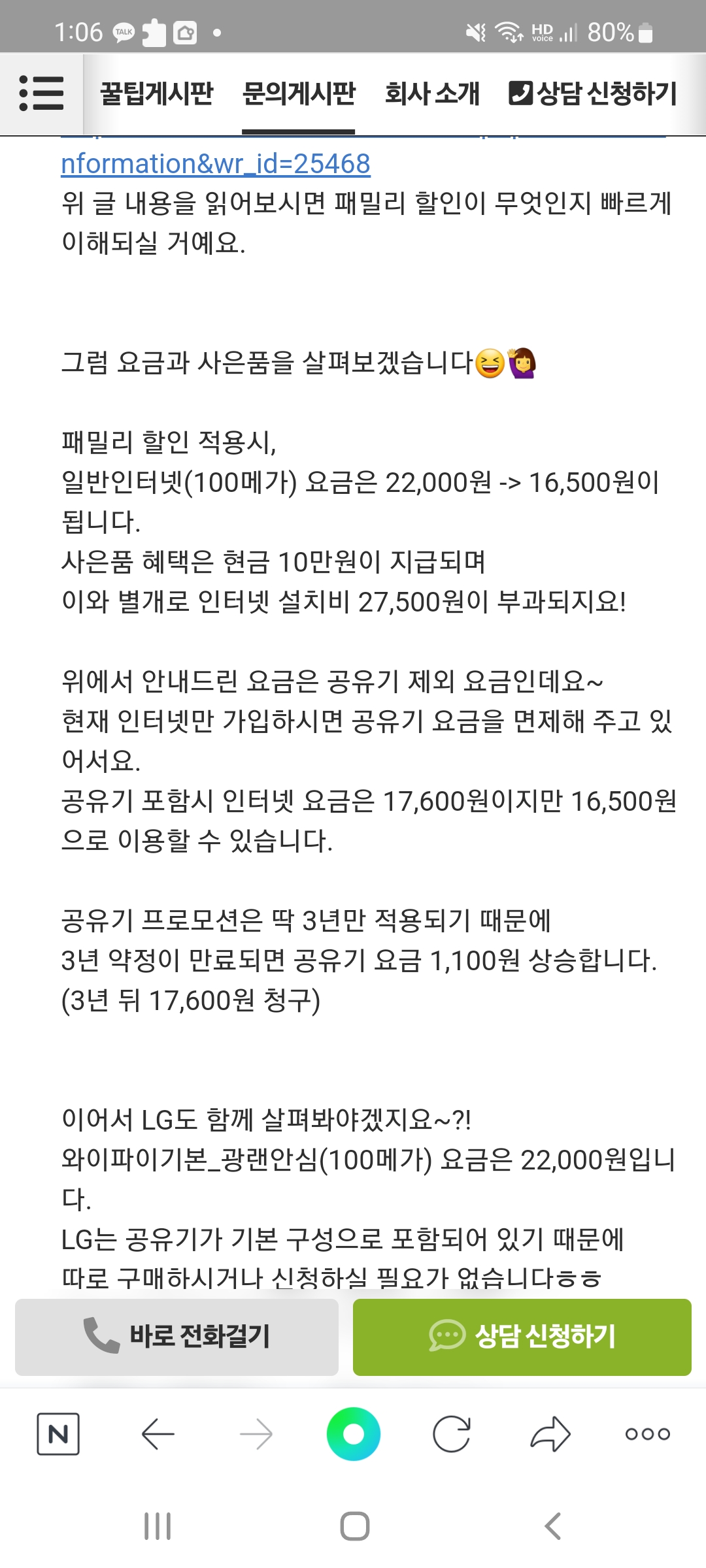 본사와 통화하신 후 안내 받으신 혜택을 댓글로 남겨주시면