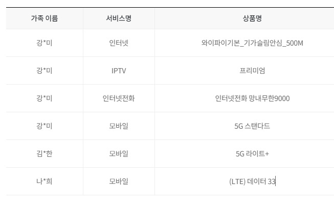 ande님과 가족분들께서 쓰시는 LG휴대폰은 LG인터넷과 결합되어 있을 텐데요~