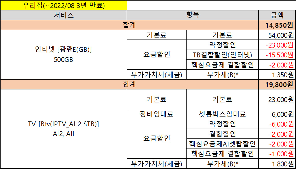 IPTV, 인터넷 기간 만료로 재약정을 맺을지, 통신사 이동을 할지 고민 중입니다.