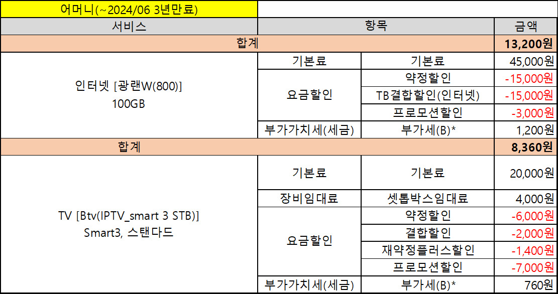유무선 결합 덕분에.. 매월 최소(?) 총합 85,600원 정도를 할인받고 계시므로~!ㄷㄷ