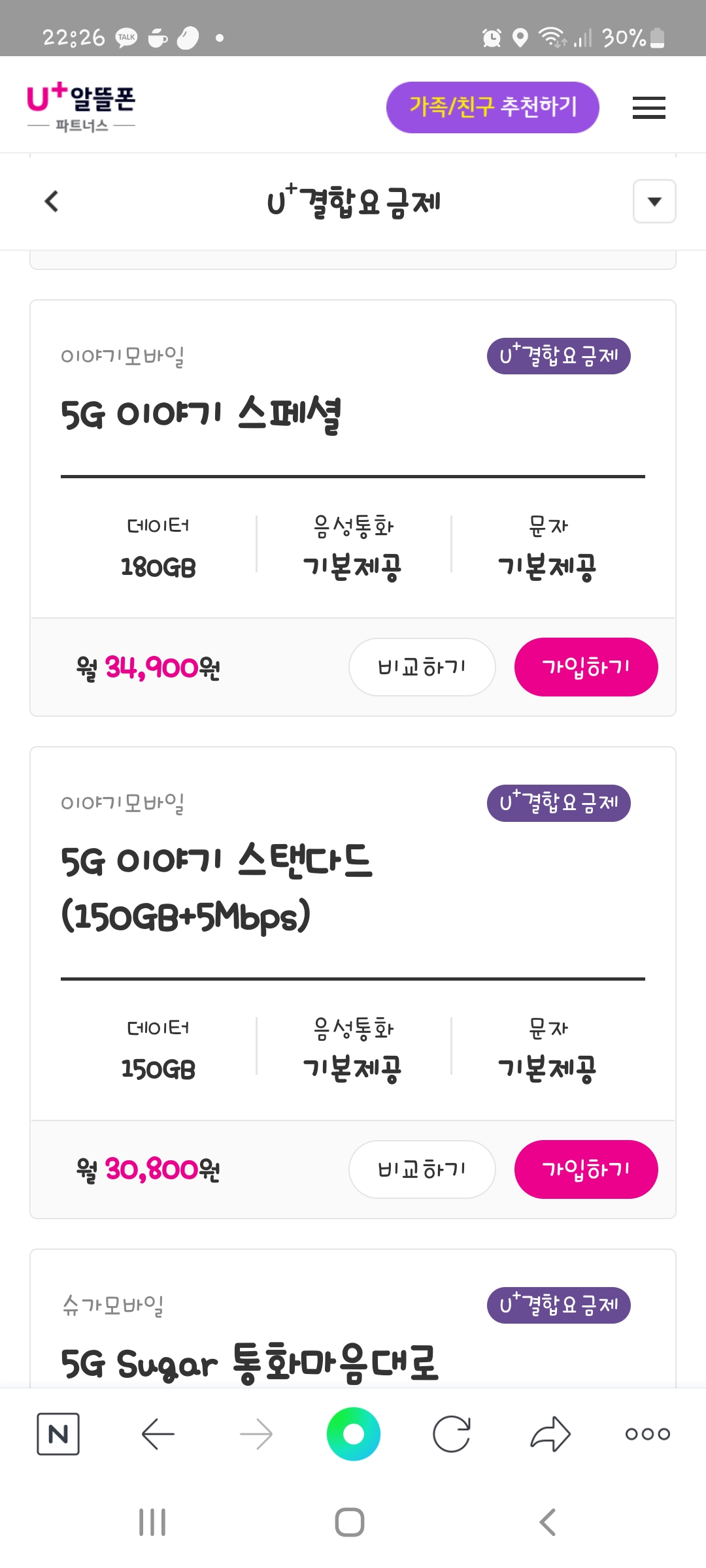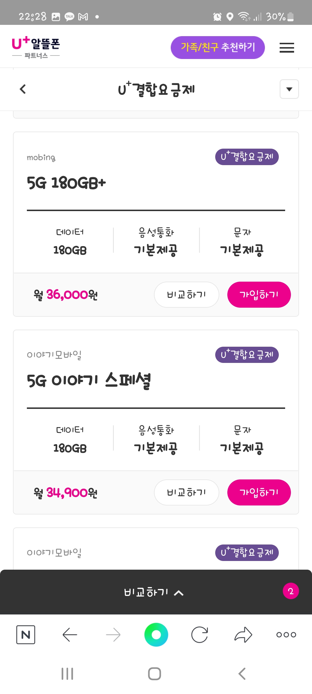 5G 든든무제한 180GB+ 요금제도 있네유~~!!ㅎㅎ