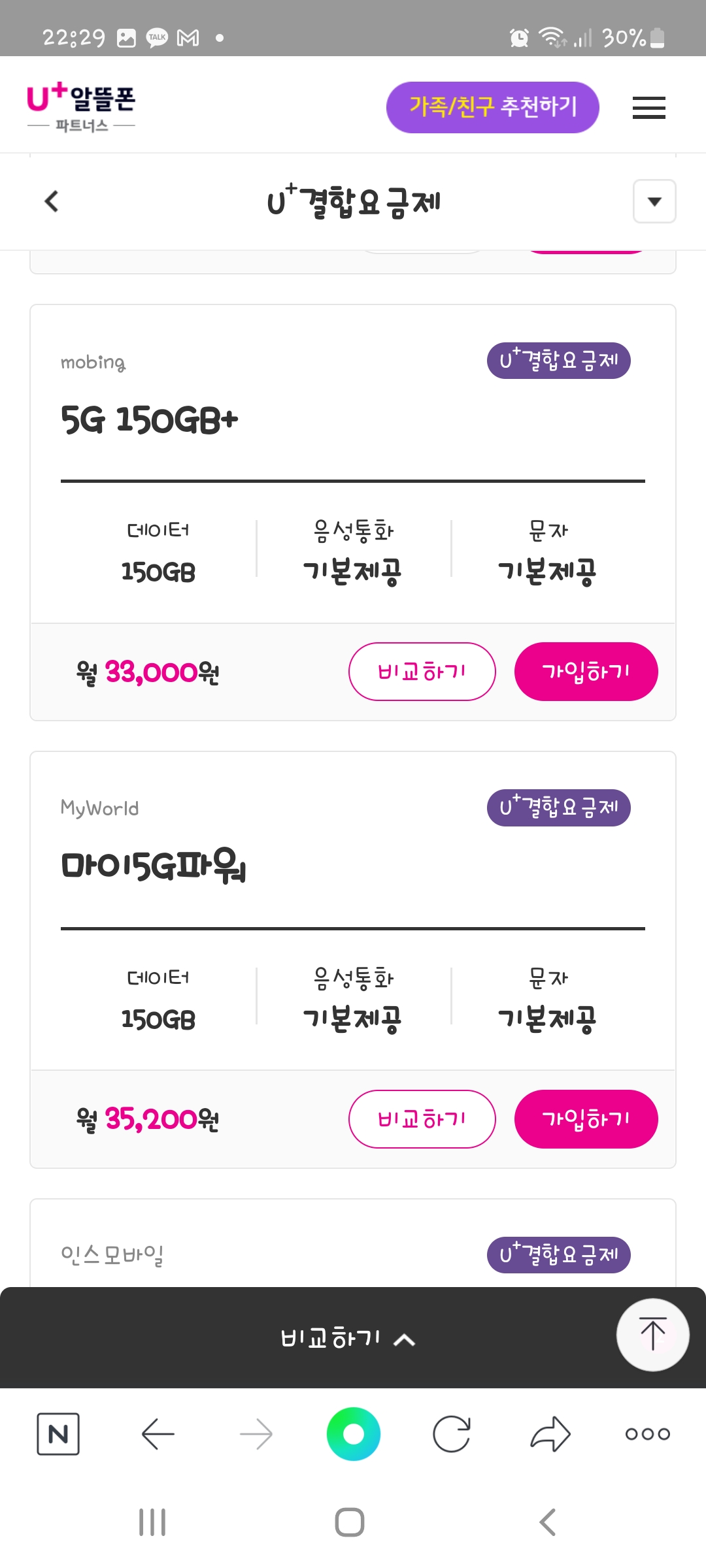 이번에 알뜰폰을 --> LG인터넷과 결합 가능한!