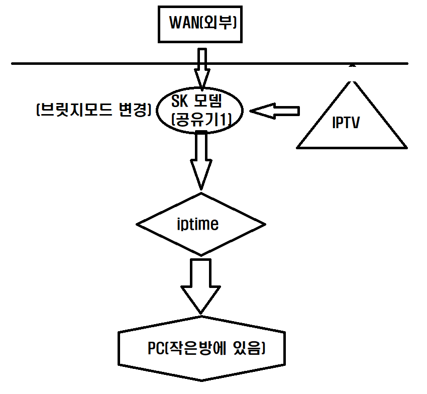 1. 집에 공유기는 딱 2대 있습니다. (SK에서 제공한 모뎀 , 개인 iptime)