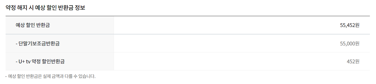 또한 이게 iptv로 추가로 들어가면 현재 인터넷+iptv+iptv인 것을 확인하게 되어서 사은품이라고 받은 탭이 iptv였다는 것을 알게되었고 그러면 탭만 해지하겠다고 하니 그건 안될 것 같다고 처음에는 말씀주시다가 제가 위약금이 얼마냐고 물어봤더니 기계값인 40~50만원정도는 나온다고 설명해주셨습니다. 그래서 카드를 추가로 발급 안받을 예정인 저한테는 월 요금이 추가되는 것이고 사은품이 아닌 결국 제 돈으로 사게되는 배보다 배꼽이 더 큰 상황이 된 것 같습니다. 그래서  고객센터 홈페이지를 통해서 확인해보니 해지 시 예상 위약금이 단말기보조상환금과 utv 약정할인 반환금으로 총 55000원정도이길래
