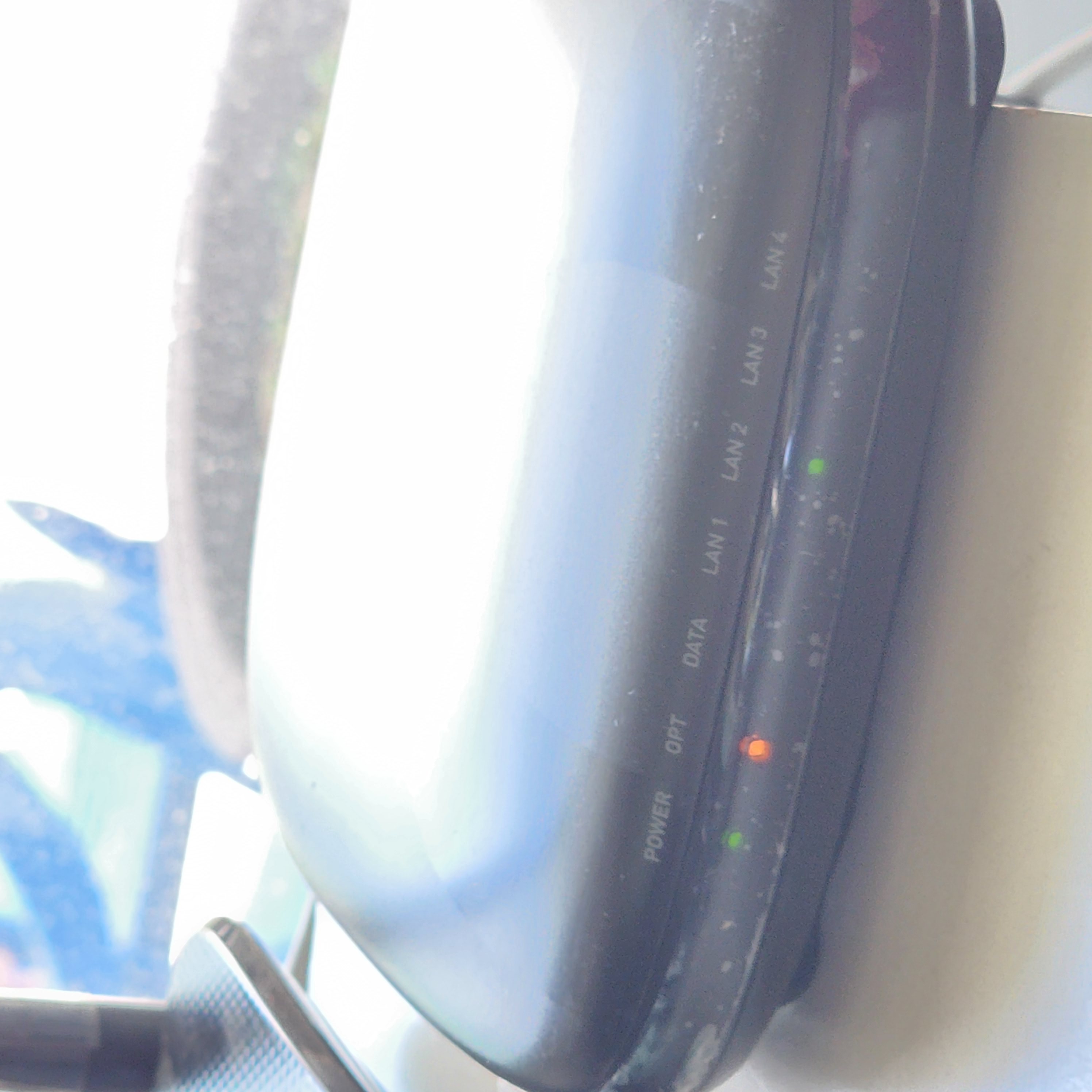 즉, 사진상의 ONT 모뎀, 혹은 모뎀 전단(前斷)에 위치한 광분배기의 체결상태가 헐거워진 등