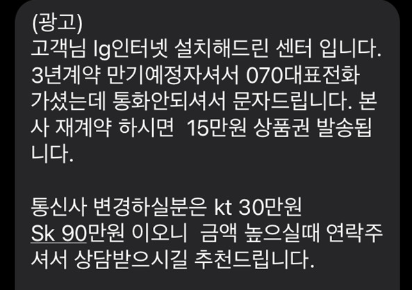 3년 약정이 약 6개월 정도 남았는데 요즘 인터넷 광고 연락이 엄청 자주 오더라구요. (제 번호는 어떻게 아는건지...)