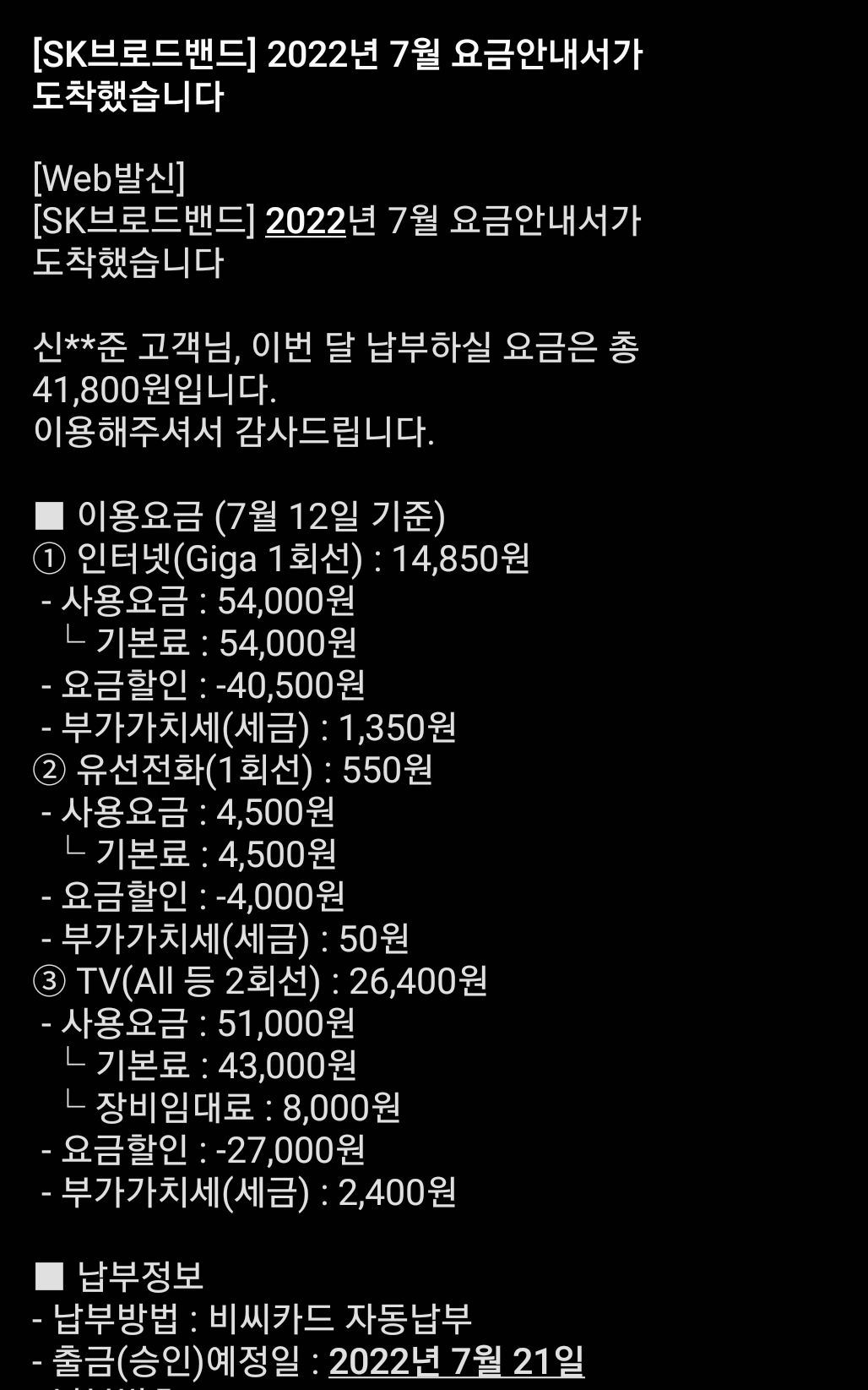 지금 총요금에서 8천원대 정도가 빠질 테니…