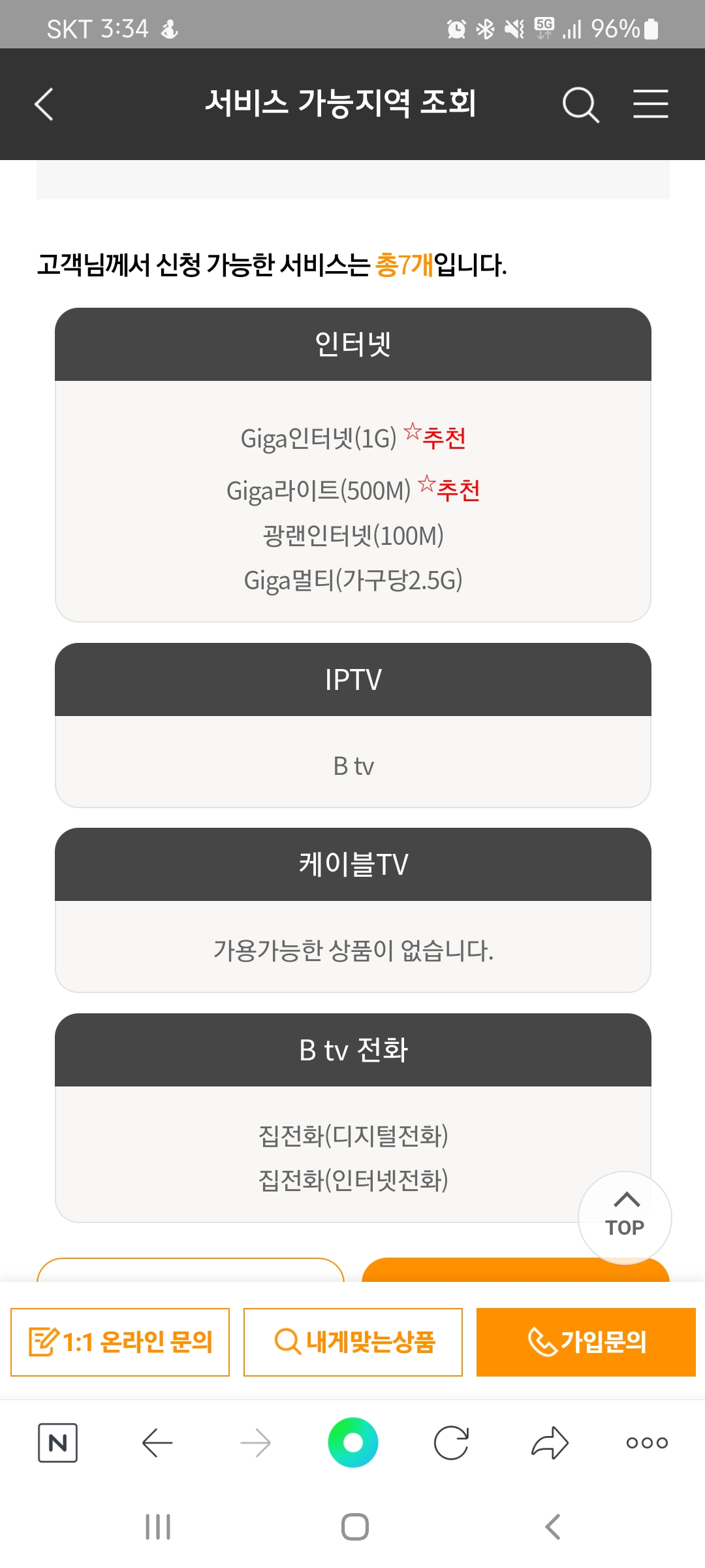 설치가능 여부 및 가입조건을 확인해보시는 것이