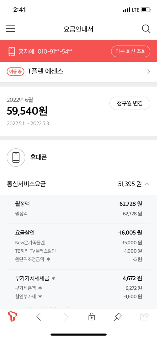 SK에서 폰결합으로 적용받을 수 있는 최대한의 할인을 잘~ 누리고 계시답니다..!