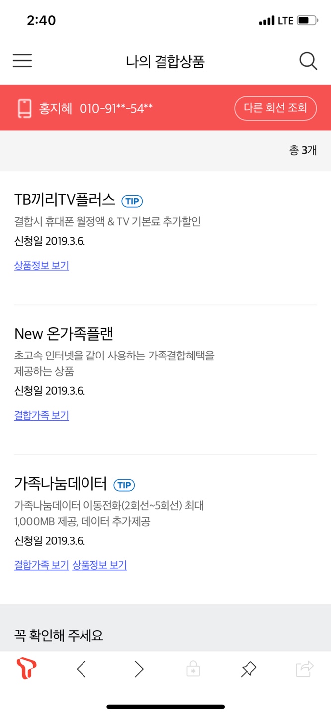 SK인터넷 + SK폰 3회선 = 결합을 적용하신 덕에,