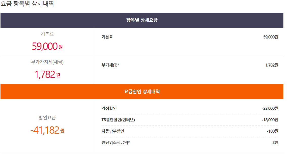 현재 부가세를 포함한 기준으로 인터넷 요금에서 19,800원 할인을 받고 있는데요~