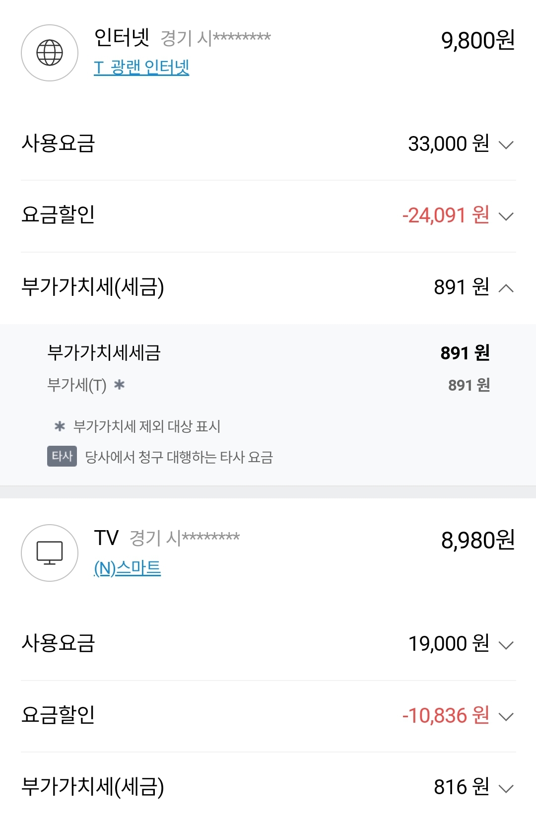 오호 SK 인터넷과 IPTV를 매우 저렴하게 사용 중이시군요~!