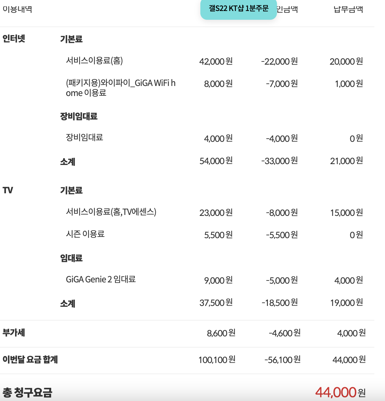 (아쉽게도 공유기와 셋탑박스 교체설치비는 각각 청구된답니다..ㅠ)