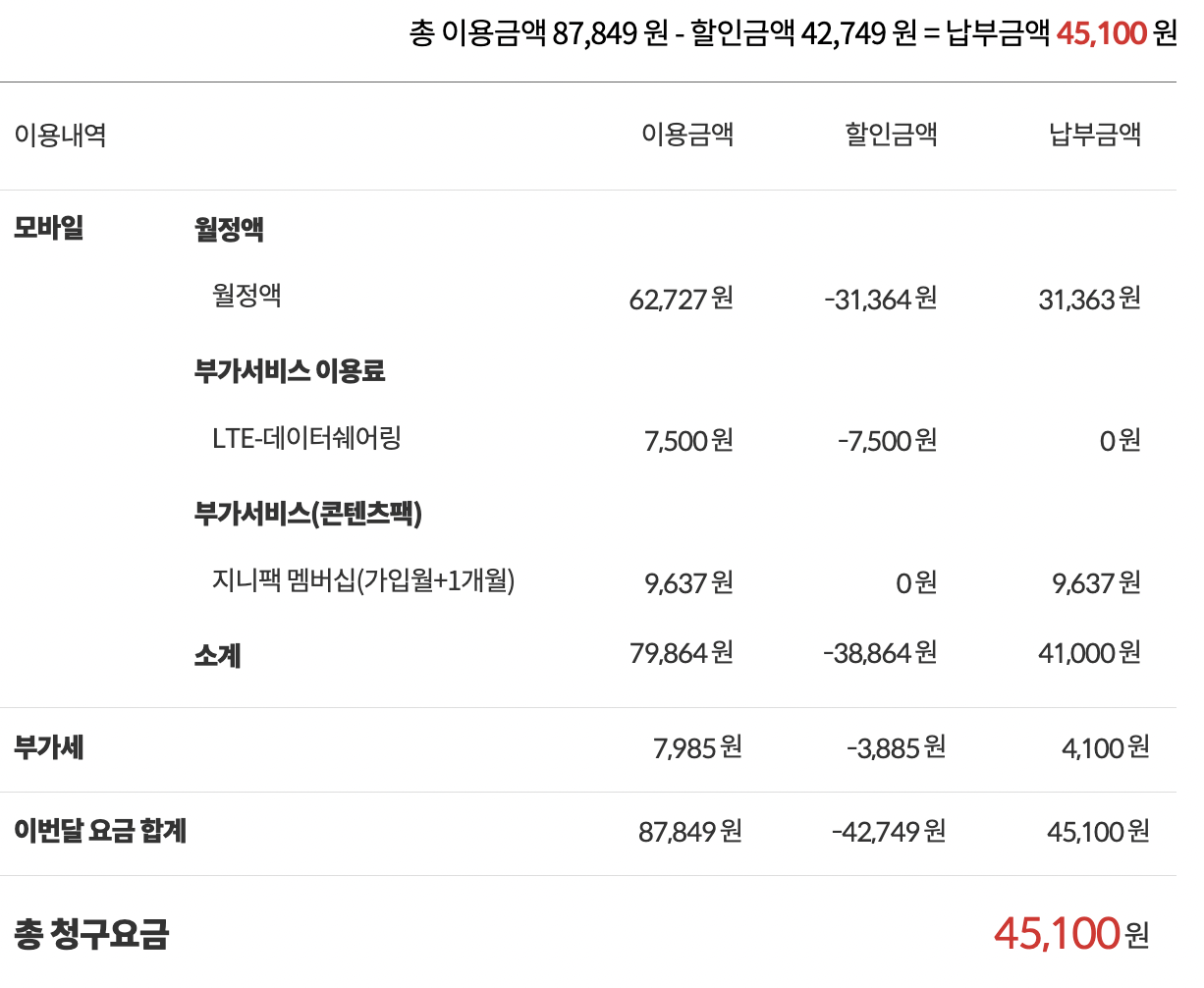 이유는 짐작하시겠지만 휴대폰 결합으로 아끼는 금액이 크기 때문이에요.