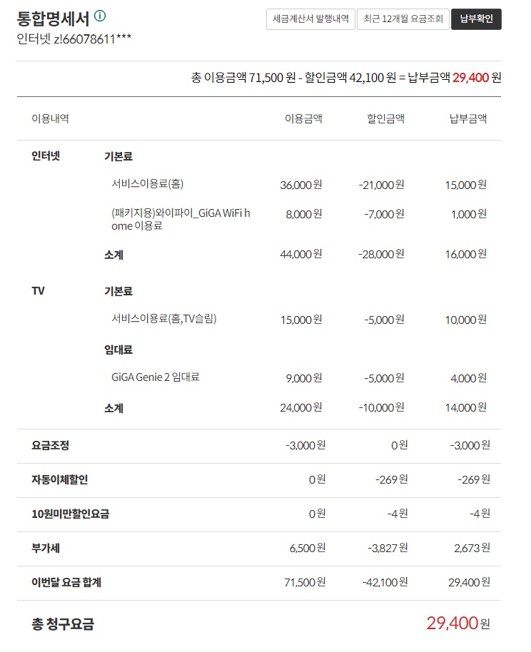 인터넷 역시.. 기존의 KT인터넷을 '재약정' 걸고서 계~속해서 이용하시는 것이..!