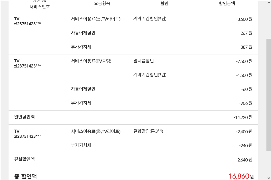 홈 결합할인(인터넷+tv결합)이 적용되있긴 하지만, 이는 어느 통신사로 가입하든 적용받을 수 있는 사항이고,