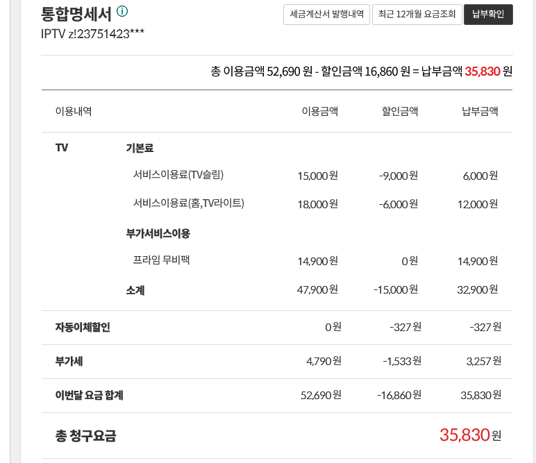 1. 짐작하신 것처럼 인터넷+티비 요금은 정가(!)에 납부하고 계신 상태이긴 합니다.