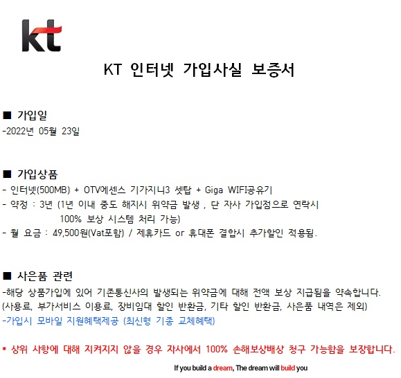 아웃바운드TM 전화를 받고 KT로 가입 신청을 하신 듯한데요^^;