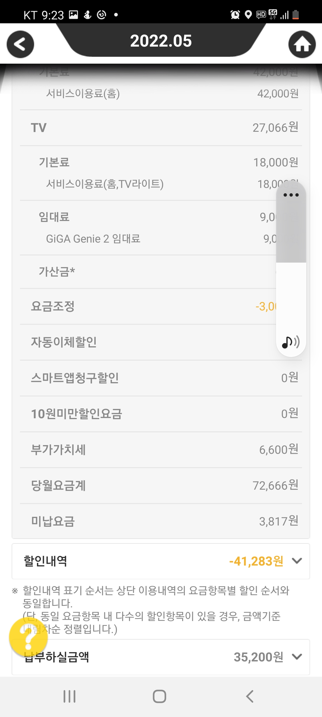 휴대폰 결합할인이 포함되어 있을 수 있어서요.