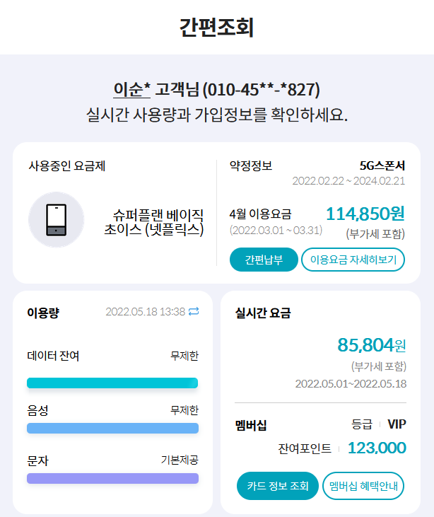 *87.8요금제 = 22,000원