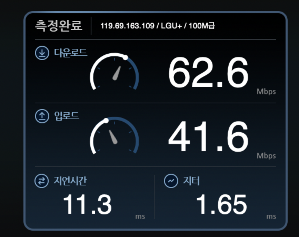 업/다운로드 속도와 핑 결과값도 알려주세용